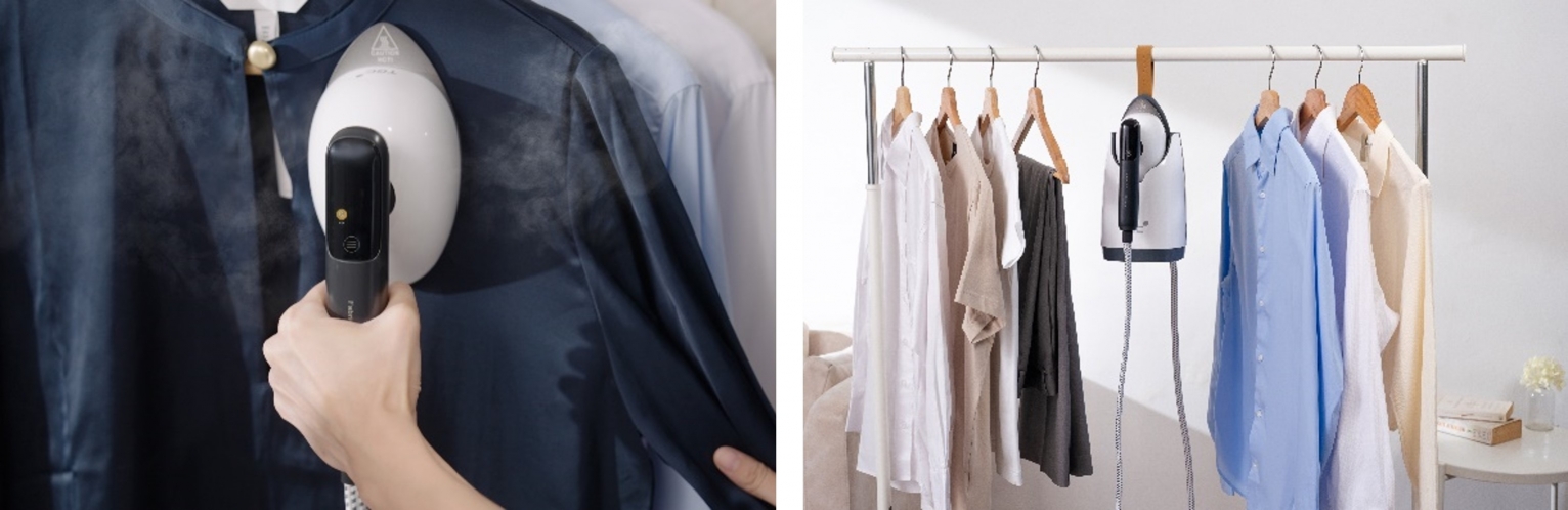 掛燙機更提供五種模式設定,包括「乾燙」、「羊毛」、「棉麻」、「混紡」以及「絲綢」,全面照顧不同布料需要,真正做到除皺不傷衣,呵護衣物不留燙痕。特設自動清潔功能,減少水垢積聚,機身更耐用,蒸氣持續穩定強勁。就算冬天厚褸不可常清洗亦可殺菌除異味,更適用於床單、毛公仔、窗簾及布藝梳化等家居物品,全面殺菌除蟎,減低家人接觸致敏源機會,絕對是日常家務的好幫手。