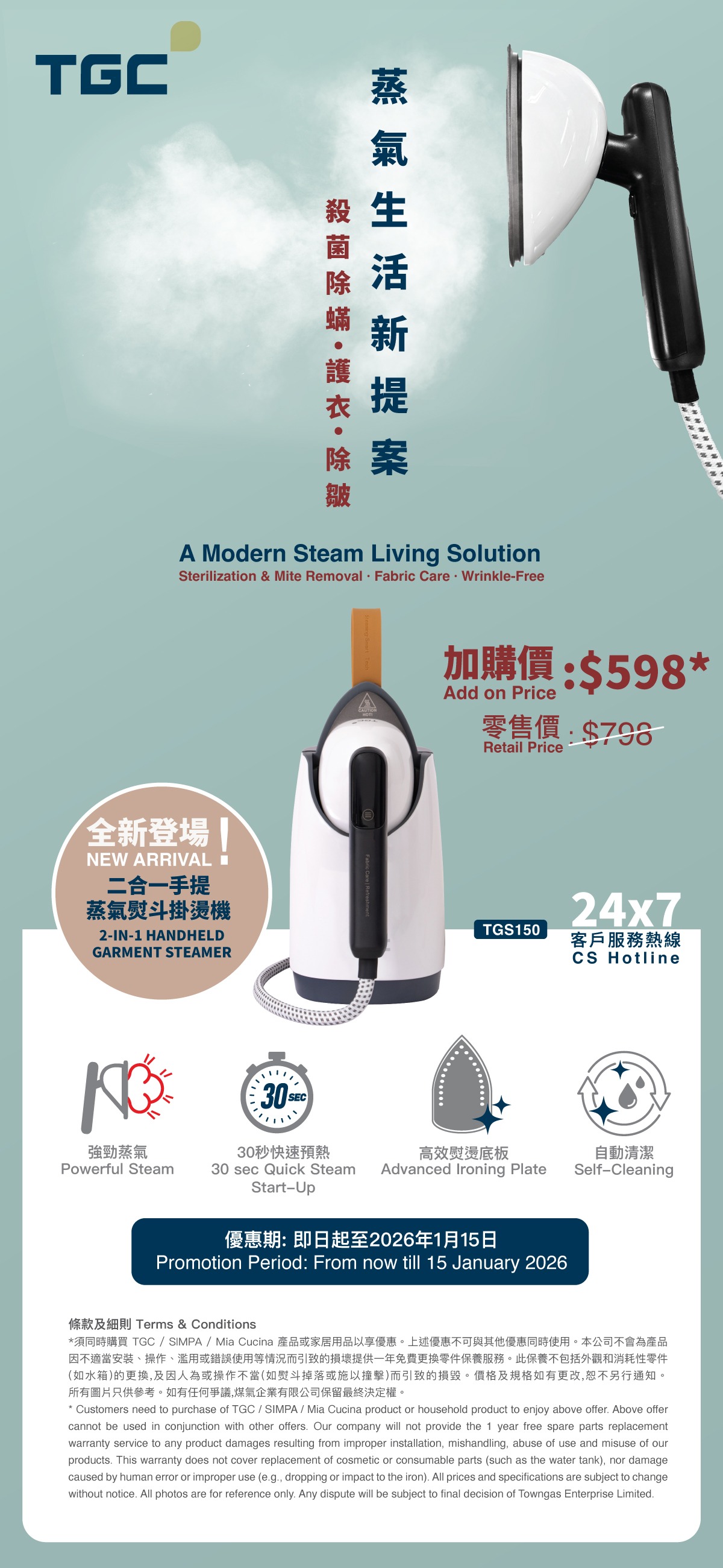 TGC 全新二合一手提蒸氣熨斗掛燙機