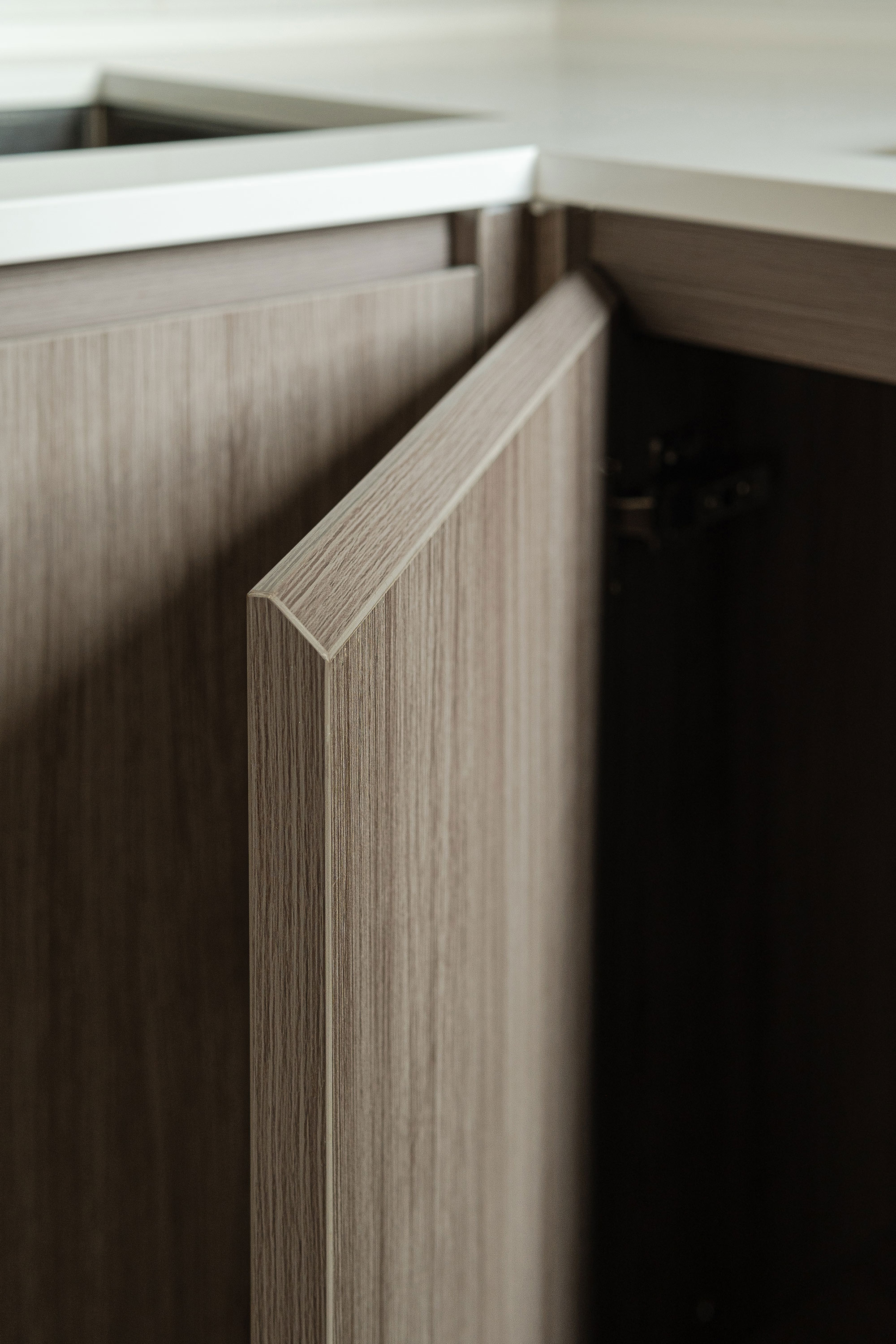 廚櫃體現生活品味之餘,亦擔起了主要的收納及展示功能,因此門板必需持久耐用。廚櫃飾面方面,亞加力板及防火膠板價格相對實惠、耐用,不易破損,是常見的廚房裝修物料。板材方面,因應香港潮濕的天氣可特別挑選具有一定防潮性的材料,夾板及中密度纖維板皆是較為普遍的板材選擇。