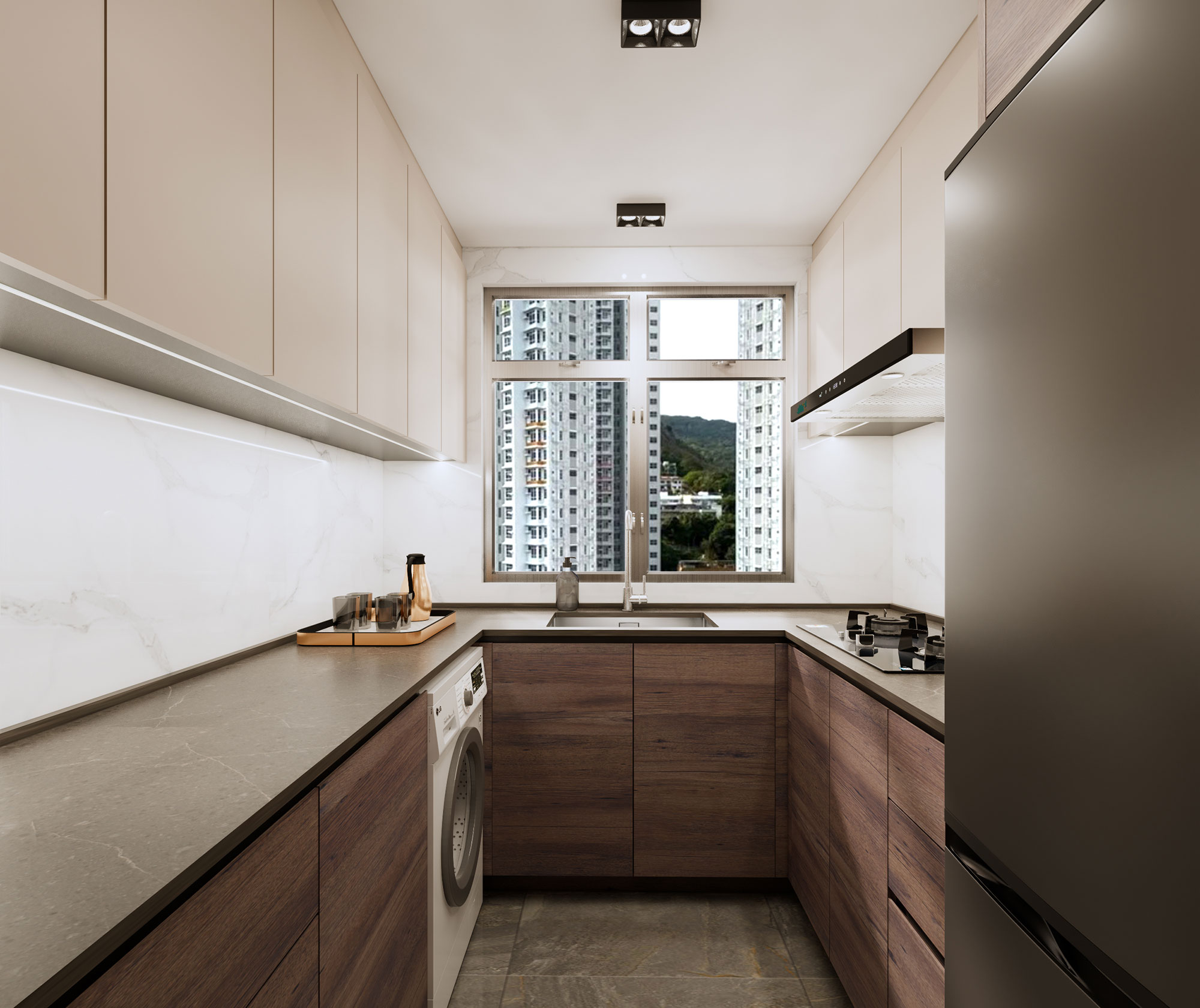 選擇耐磨、易於清潔的材料能確保廚房耐用。石英石或人造石枱面具有良好的耐磨性,而且能抵抗高溫、刮傷和污漬;光滑的表面如不鏽鋼或玻璃則能夠輕鬆清潔,有助保持廚房整潔。